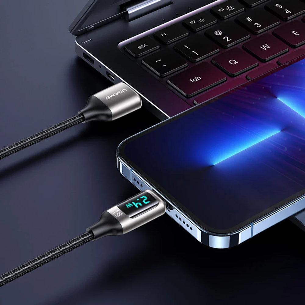 Cablu de Încărcare și Transfer Date USAMS cu Display Digital LED, 1.2m, 2.4A, 12W
