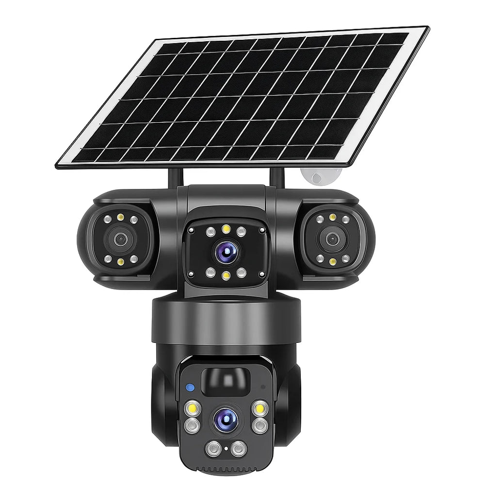 Cameră de Supraveghere Solară 4G/WiFi cu 3 Lentile și Vedere Panoramică 360°