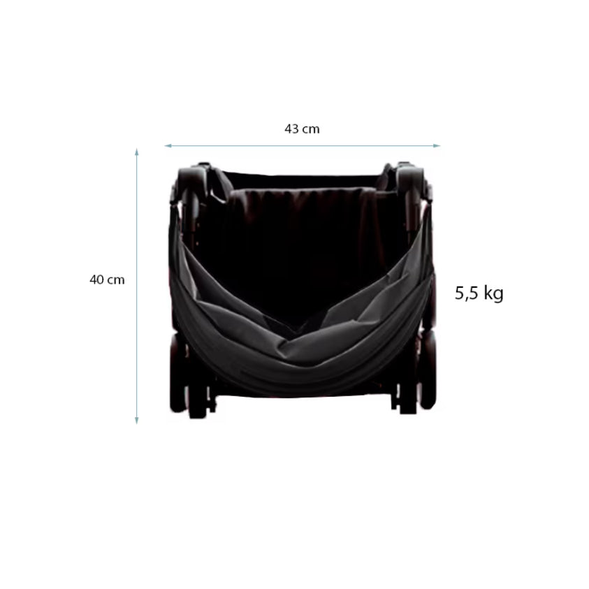Cu dimensiuni deschise de doar 45 x 30 x 48.5 cm, acest cărucior este ideal pentru spații înguste – fie că urci în avion, te plimbi prin mall sau te strecori prin alei aglomerate. Structura din aluminiu și plastic dur îl face ușor de manevrat, dar suficient de robust pentru utilizare zilnică.
