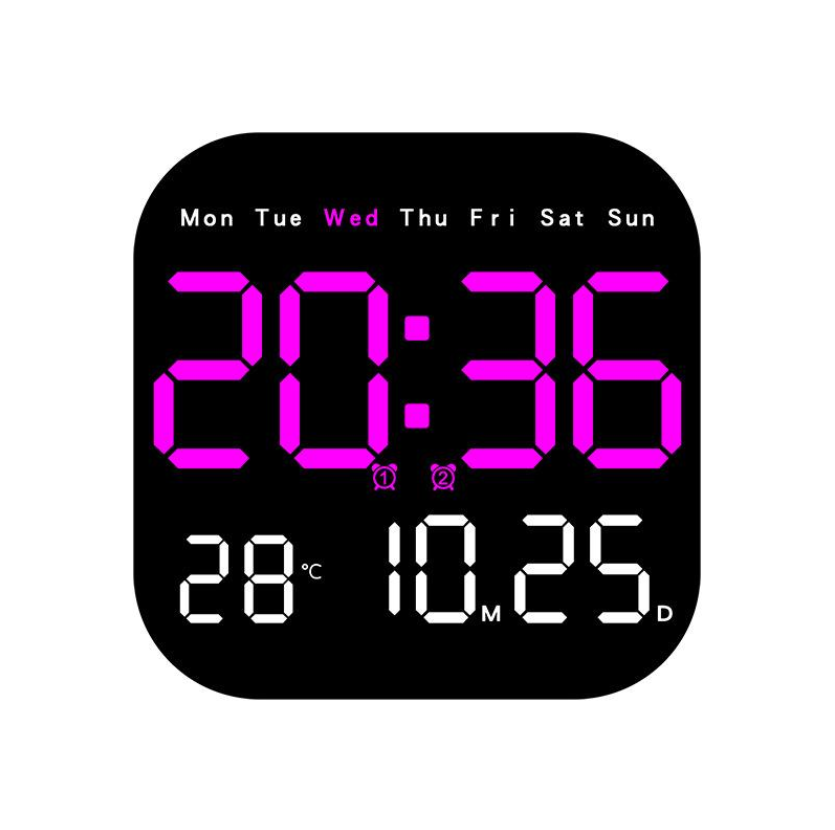 Ceas de perete digital cu telecomandă, AT PERFORMANCE®, data cronometrare, numărătoare inversă, conectare, utilizare ceas de masă, 2 alarme, ceas deşteptător cu LED DST cu reglare automată, mov