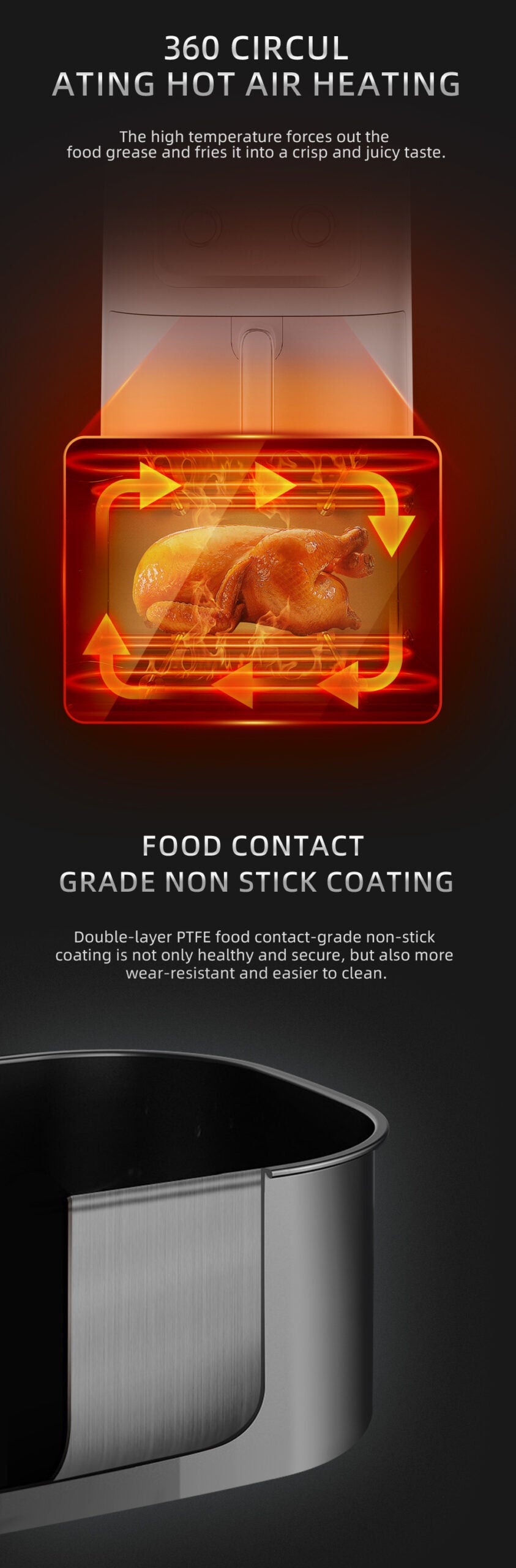 ✅ Gătire uniformă – Circulația aerului fierbinte asigură rezultate perfecte de fiecare dată.