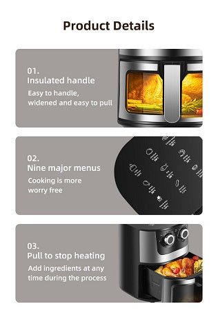 🔹 Ecran LCD și fereastră de observare – Monitorizare ușoară a procesului de gătire.