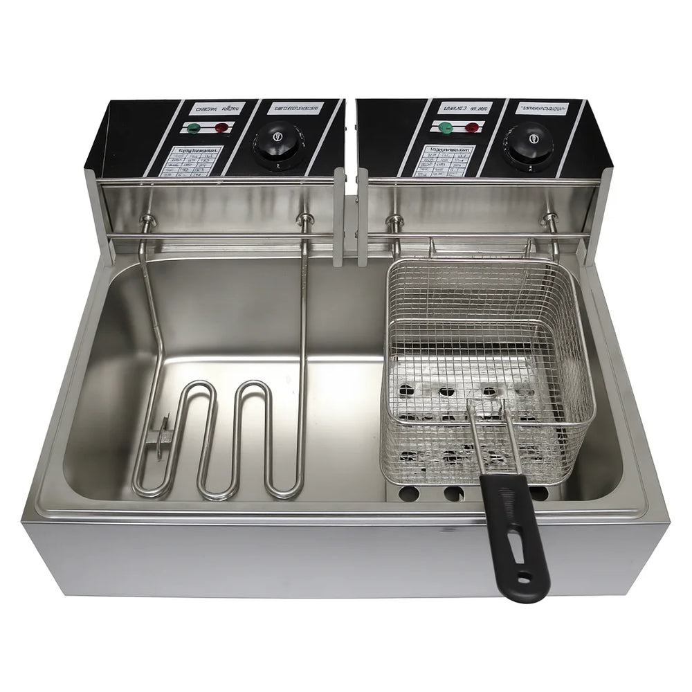 Echipată cu două rezervoare independente de câte 6 litri fiecare, cu propriul termostat și element de încălzire de 2500W, friteuza oferă control total, volum mare de prăjire și performanță ridicată chiar și în perioade de lucru intens.