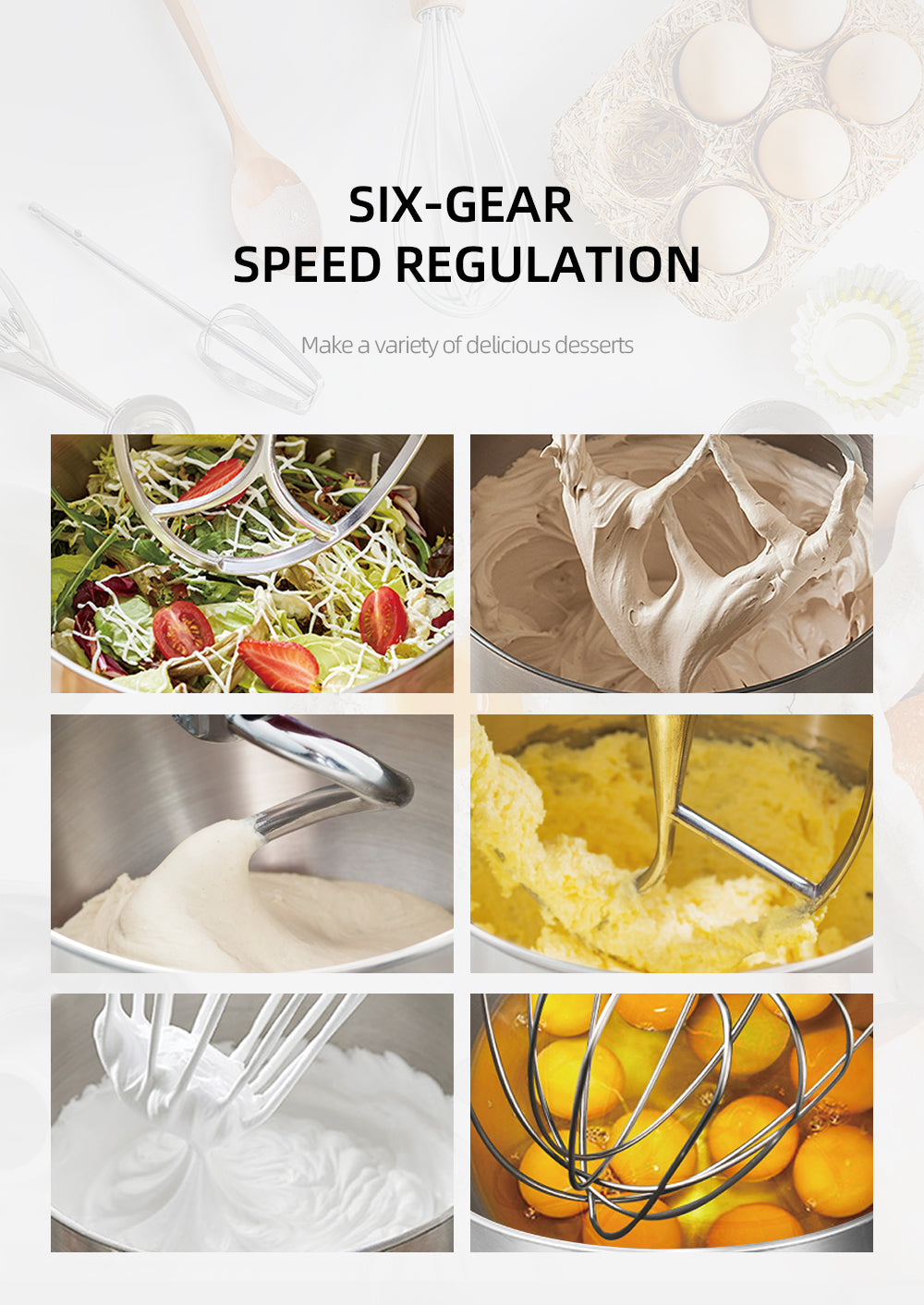 • Reglaj fin cu 6 trepte de viteză (gear speed regulation) – adaptează ritmul la fiecare rețetă