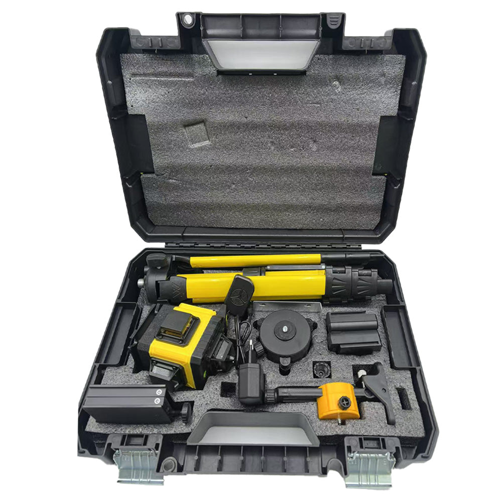 | Nivelul cu laser este prevazut cu un suport de perete magnetic puternic care poate fi atasat la placi de pardoseala, autocolante de perete si placi de tavan cu o distanta de 7 mm. De asemenea, are filete de montare de 1/4 si 5/8 pentru diferite metode de montare. Baza rotativa la 360° faciliteaza ajustarea unghiului nivelului laser. | Prin scanarea codului QR de pe spatele telecomenzii pentru a descarca APP-ul telefonului mobil, nivelul laser controlat de telefonul mobil prin conexiune BT, puteti regla cu usurinta luminozitatea luminii laser prin apasarea lunga a butonului V/H. | Kitul de nivelare laser cu auto-nivelare 4D cu 16 linii permite pozitionarea precisa cu un sistem de auto-nivelare. Liniile orizontale si verticale sunt clar definite pentru un plus de precizie. Are 2 butoane tactile, un buton OUT/H si un buton V. |