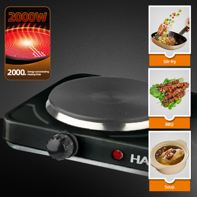 Descoperă Plita Electrică HALEY cu 2 Zone de Gătit, soluția ideală pentru cei care caută un aparat de gătit modern, eficient și compact, fără compromisuri la performanță sau design. Cu o putere totală de 2000W (2x1000W), carcasă elegantă din oțel inoxidabil și dotări inteligente precum protecție la supraîncălzire și funcție timer, această plită este perfectă atât pentru bucătării de apartament, cât și pentru spații de gătit alternative – cămine, camping, birouri sau case de vacanță.