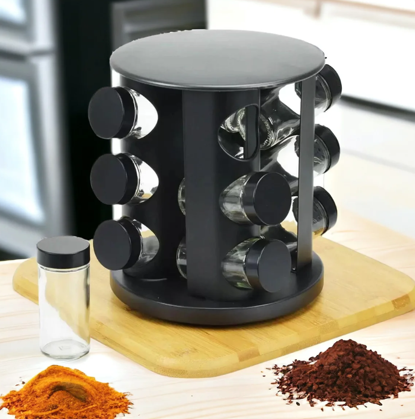Set 12 recipiente pentru condimente, cu suport, AT PERFORMANCE®, negru