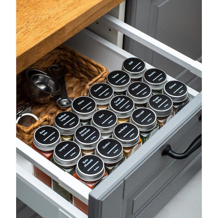 Spune adio borcănașelor fără nume sau condimentelor uitate în spate! Setul include: