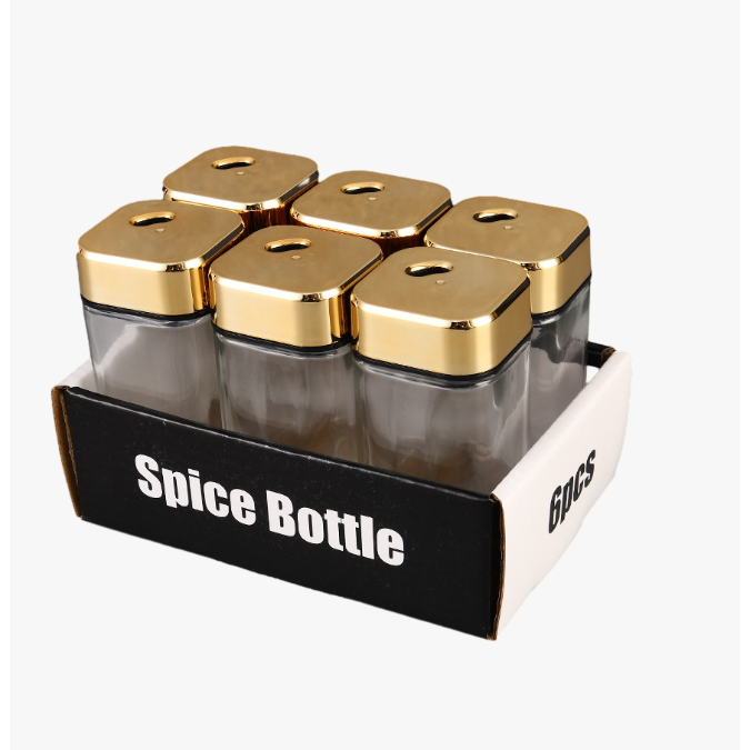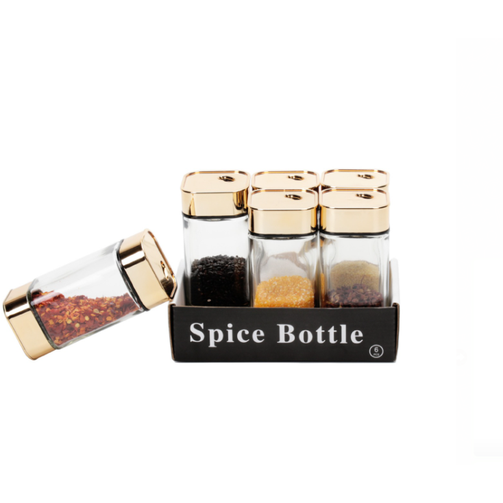 Set 6 Recipiente pentru condimente din sticla, At Perfomance, capac de inox, auriu, 10 x 4.5 x 4.5 cm