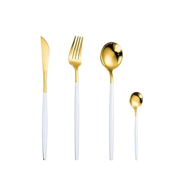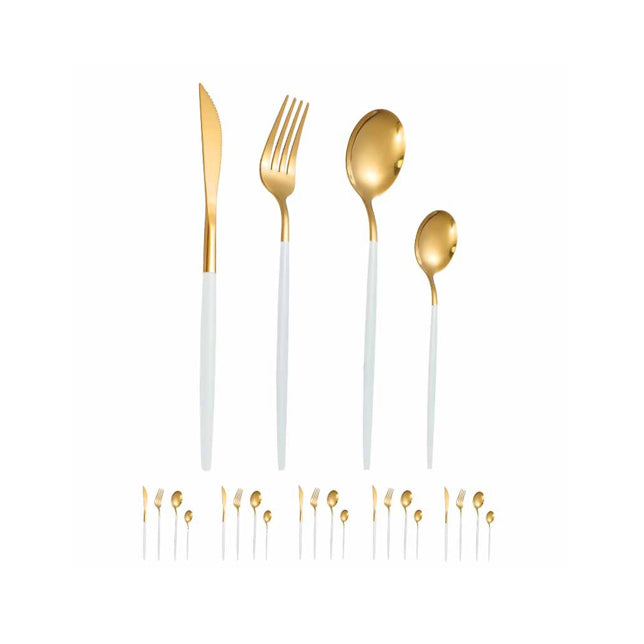 Set de tacamuri At Performance, 24 piese, din otel inoxidabil, Auriu / Alb