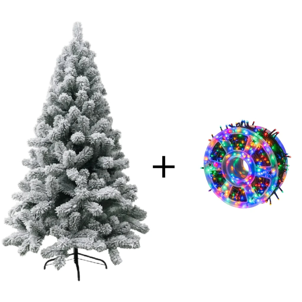 Set Decor Crăciun Premium – Brad Artificial 2.1m cu Zăpadă + Instalație Liniară 50m, 240 LED Multicolor, 8 Jocuri de Lumini