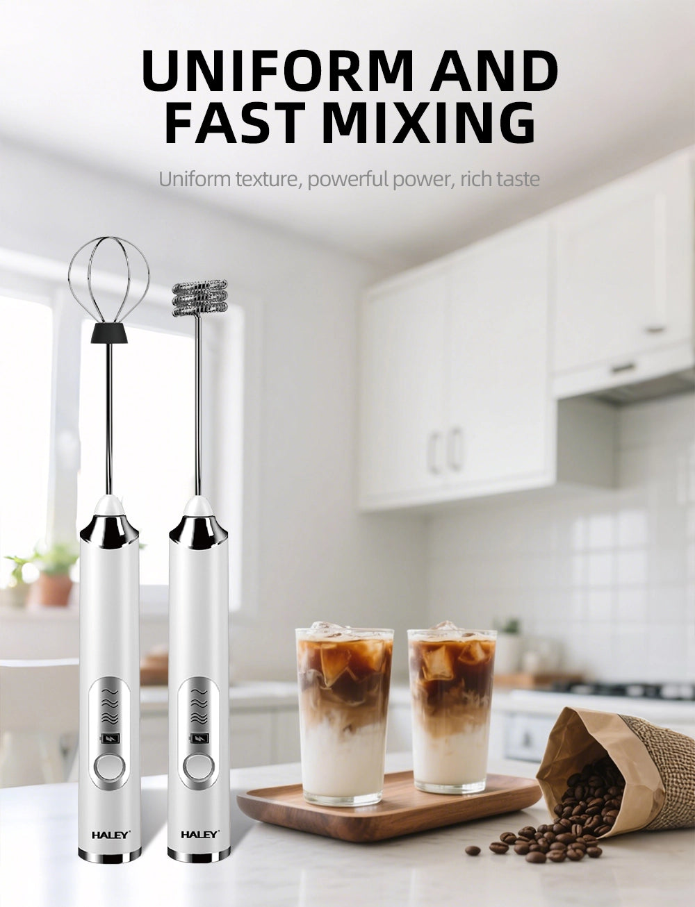 Spumator de Lapte Electric HALEY HY-1130, 20W, 3 Viteze, Încărcare USB, 2 Capete Inox, Multifuncțional 2 în 1