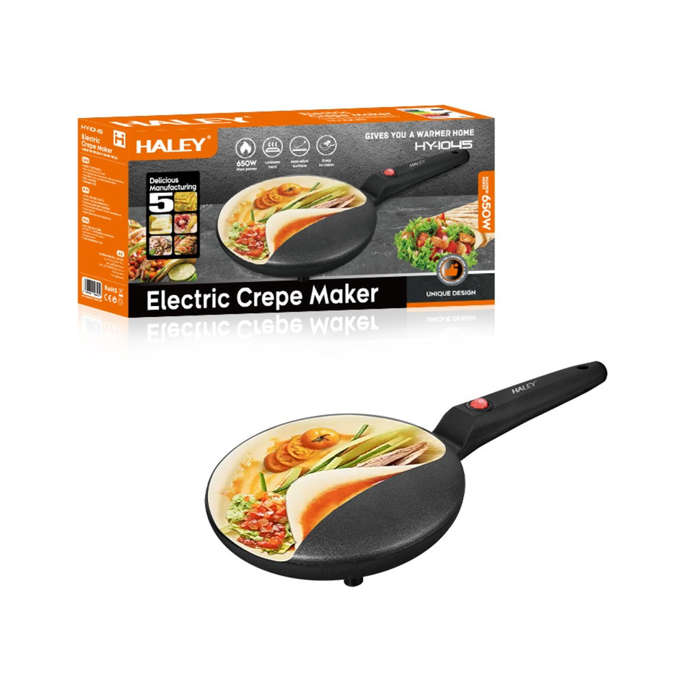 Tigaie Electrică pentru Clătite HALEY, 650W, Gătire Fără Ulei, Suprafață Mare, Buton Intuitiv, Mâner Termorezistent