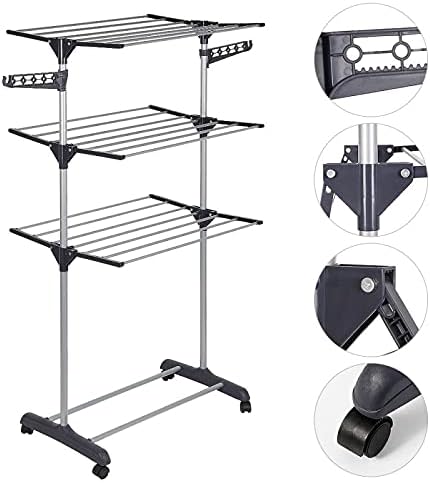 Designul său vertical maximizează spațiul disponibil, fiind perfect pentru apartamente mai mici sau pentru a fi utilizat în zonele unde nu aveți suficient loc pentru un uscător tradițional. Cele patru niveluri permit uscarea simultană a mai multor articole de îmbrăcăminte, optimizând astfel timpul necesar uscării.